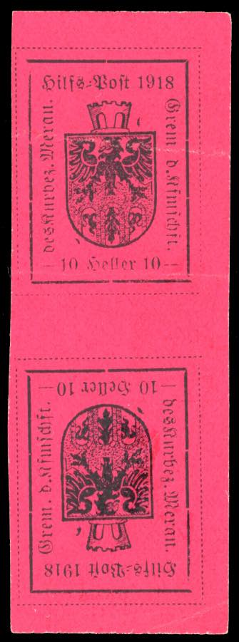 Lot 1423 - MERANO 1918 - 10 h. carminio lilla, coppia verticale ...