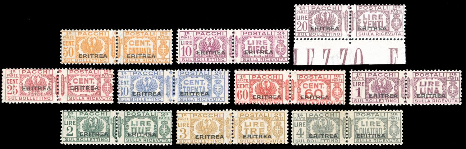 PACCHI POSTALI 1927/37 - Fascio al centro soprastampati, serietta di 10 valori (23/32), gomma originale integra, perfetti e di ottima ... Read more