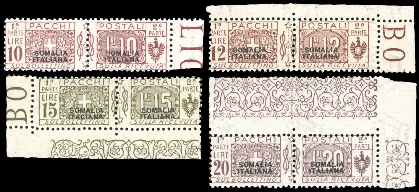 PACCHI POSTALI 1926 - Nodo di Savoia, soprastampa in nero del II tipo, serie completa (50/53), tutti angolo/bordo di foglio, gomma originale integra, perfetti e di ottima qualità. Molto freschi.