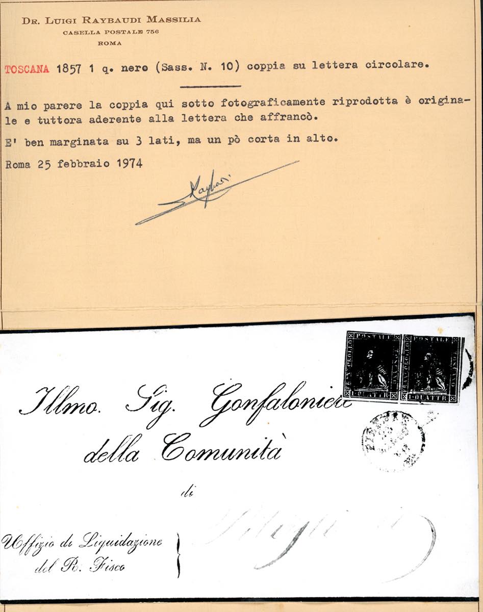 TOSCANA 1852/1859 - Bell'insieme di 14 lettere affrancate del periodo. Buona varietà di combinazioni e tariffe. Notata una coppia del 1 q. (10) isolata ed una coppia 1 cent. (17), isolata, entrambe cert. Raybaudi. Alto valore di catalogo. Ex coll. Imperato.