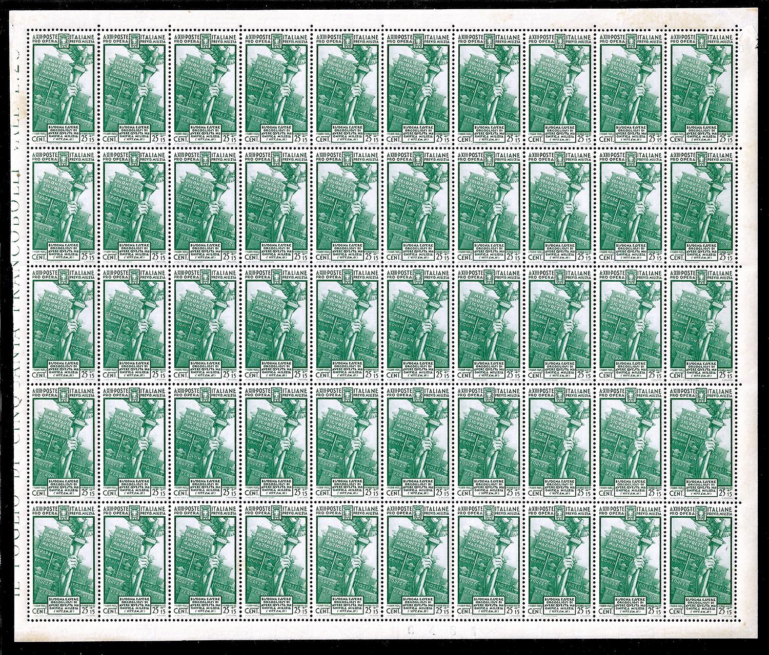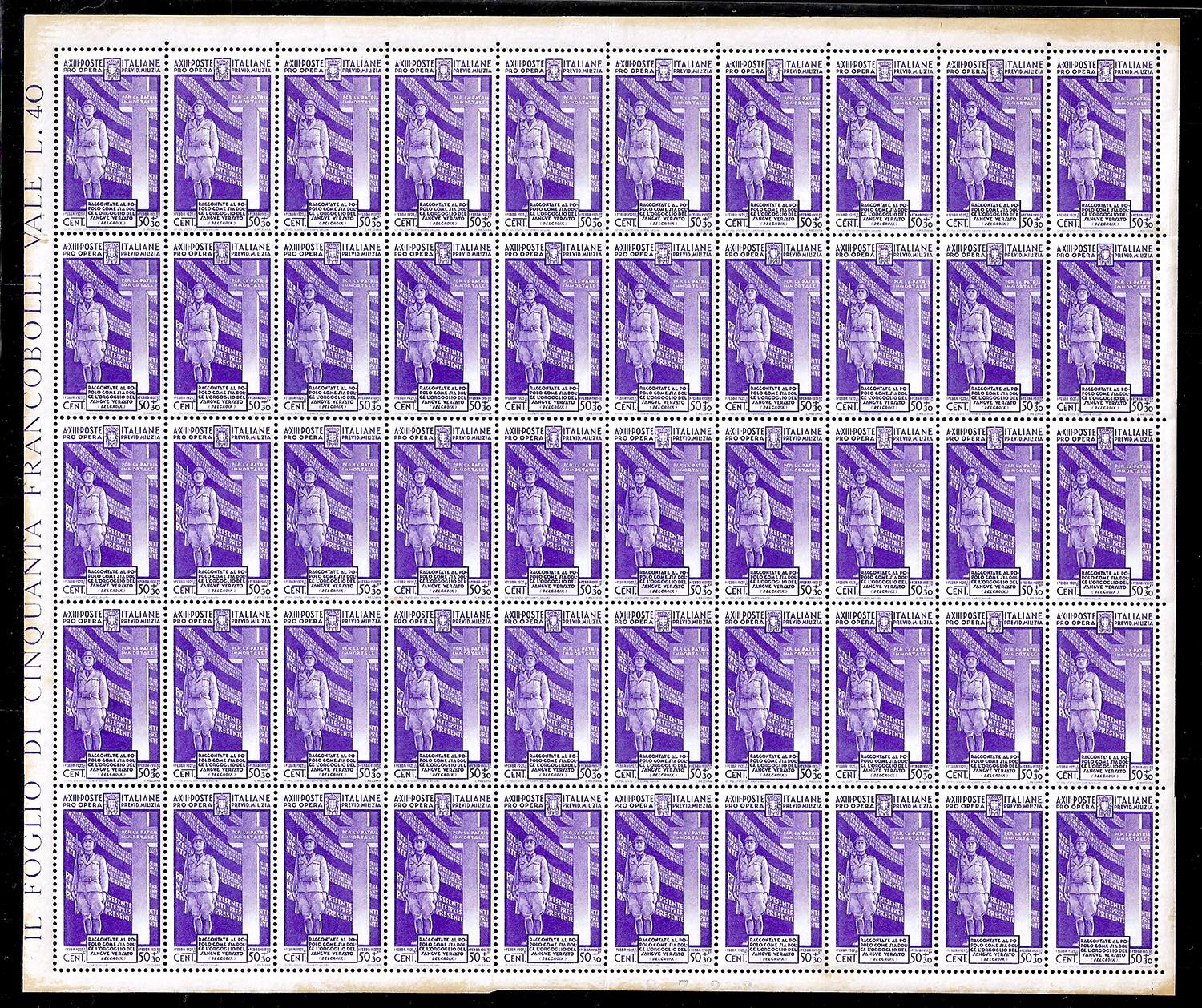 REGNO D'ITALIA 1935 - Milizia IV emissione (380/383+A89), serie completa in fogli di 50 esemplari, nuovi, gomma originale integra, ... Read more