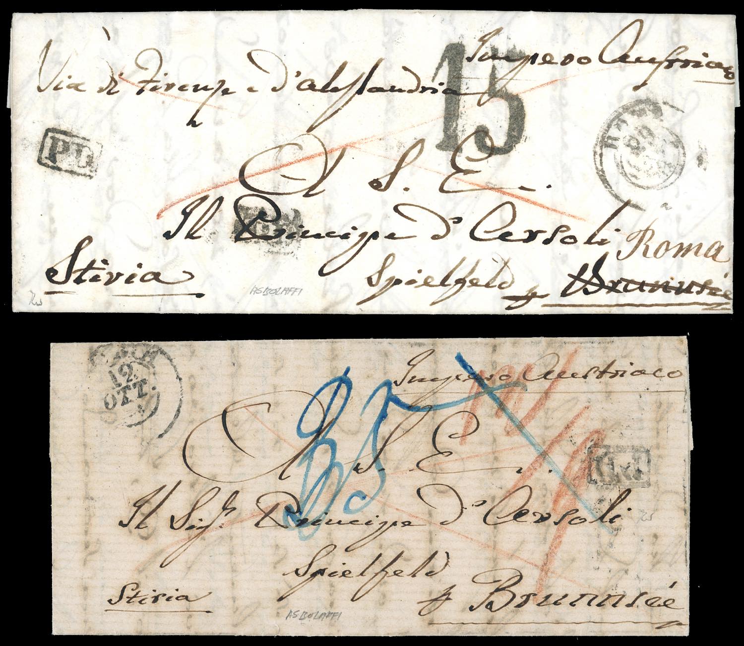 Lot 247 - 1861 - Due lettere non affrancate da Roma a Spielfeld, in ...