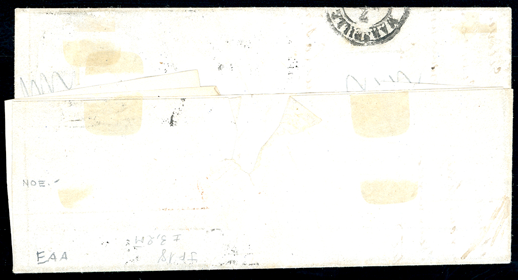 1857 - 5 cent. verde scuro, coppia orizzontale, 40 cent. vermiglio scuro (13Ac,16b), perfetti, su lettera da Nizza Marittima 6/4/1857 a Marsiglia. Multiplo estremamente raro di questa pregiata tonalità del 5 cent. Per specialista. A.Diena, Fiecchi, cert. Colla.