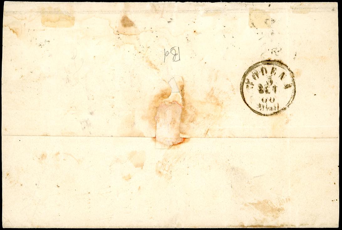 1860 - 5 cent. verde oliva grigiastro chiaro (13Bd), striscia orizzontale di quattro, lievi difetti, su sovracoperta di lettera senza i ... Read more