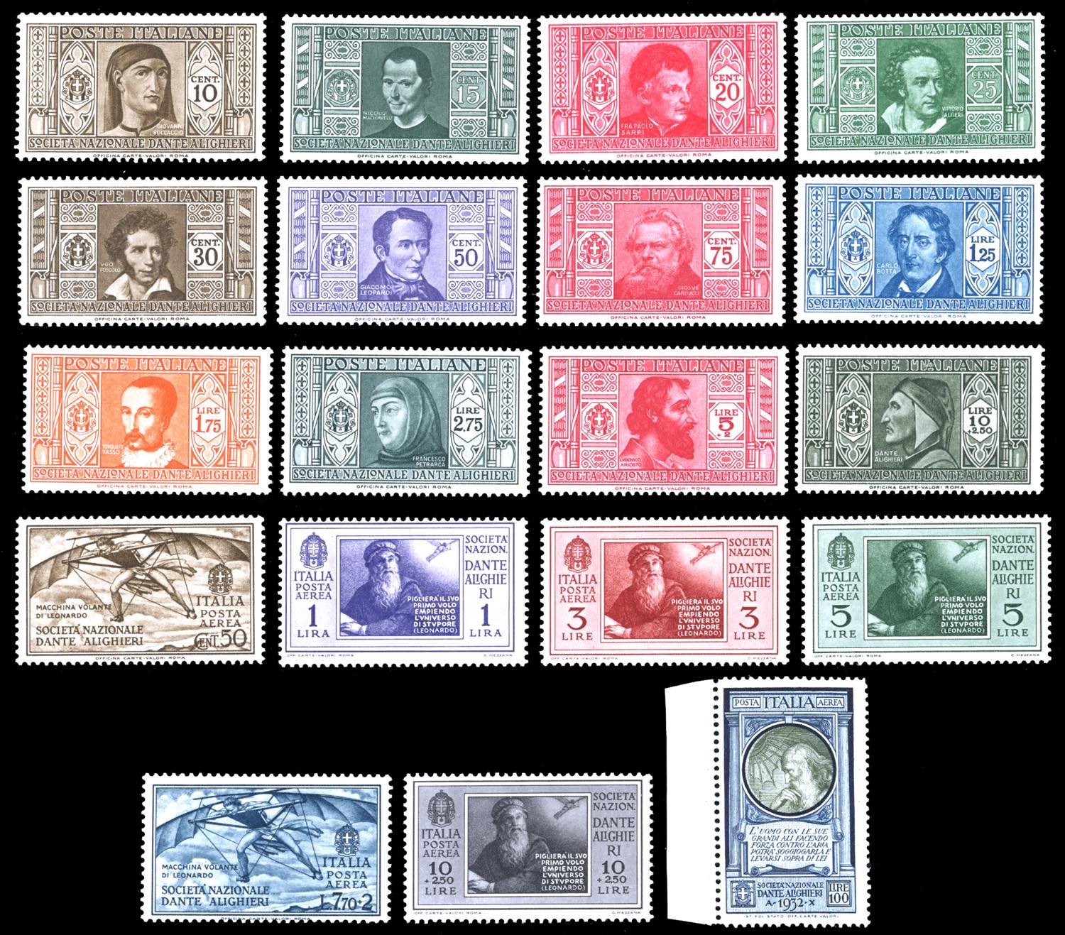 1932 - Dante, serie completa (303/314+A26/A31+A41), gomma originale integra, perfetti. Alti valori. Ferrario.
