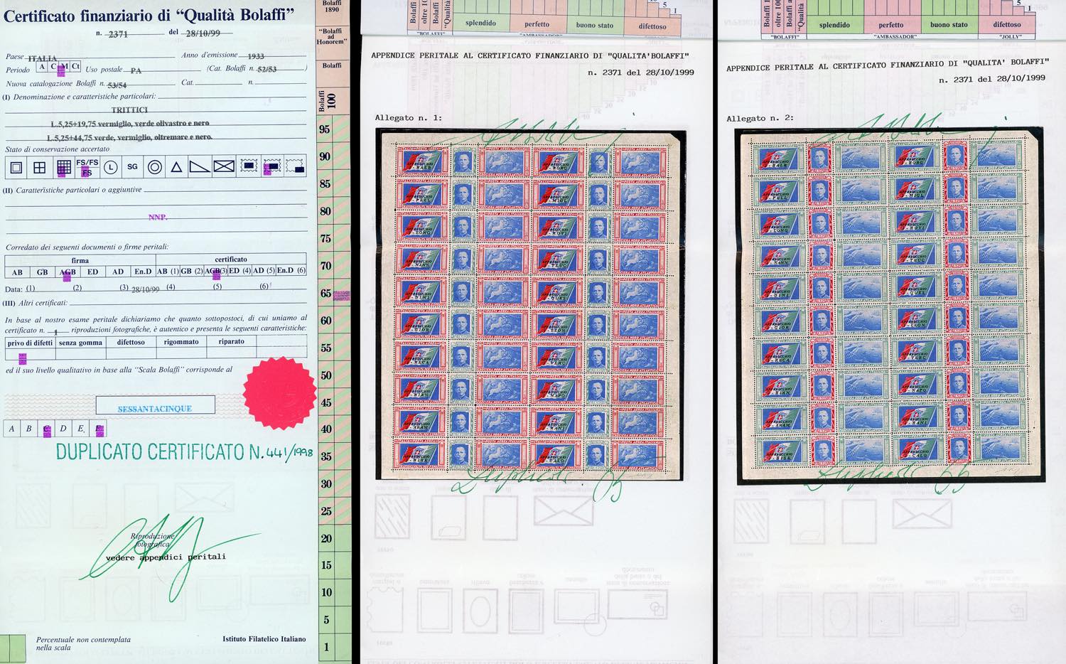 Lot 990 - 1933 - Serie completa in fogli dei Trittici della Crociera ...