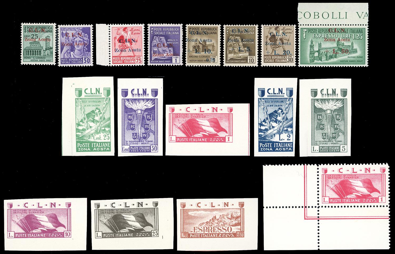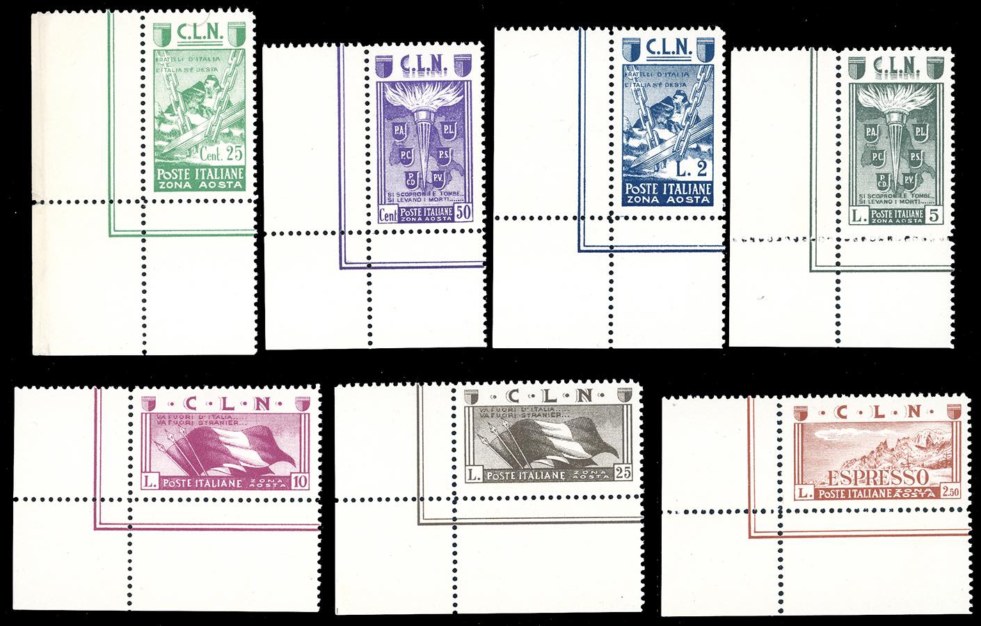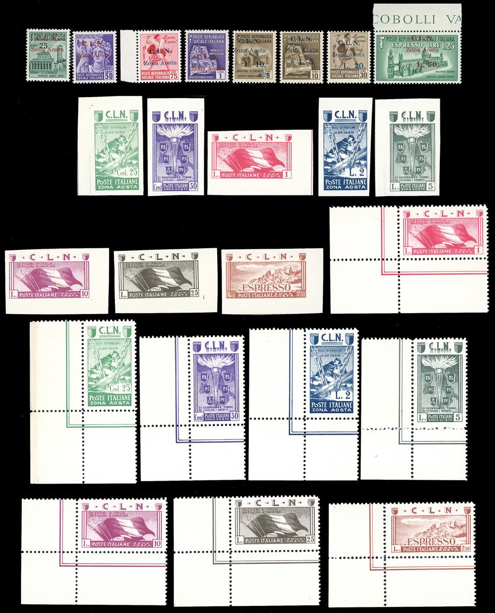 Lot 1596 - AOSTA 1944 - Le tre emissioni, serie complete, la Soggetti ...