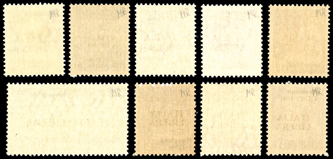 RAVENNA 1944/45 - Serie completa di 9 valori soprastampati (CEI n.1/9 € 24.000,Orlandini n.1/9 pag.60 € 4.500), nuovi, gomma originale integra, perfetti. Ottima qualità. Cert. Raybaudi.