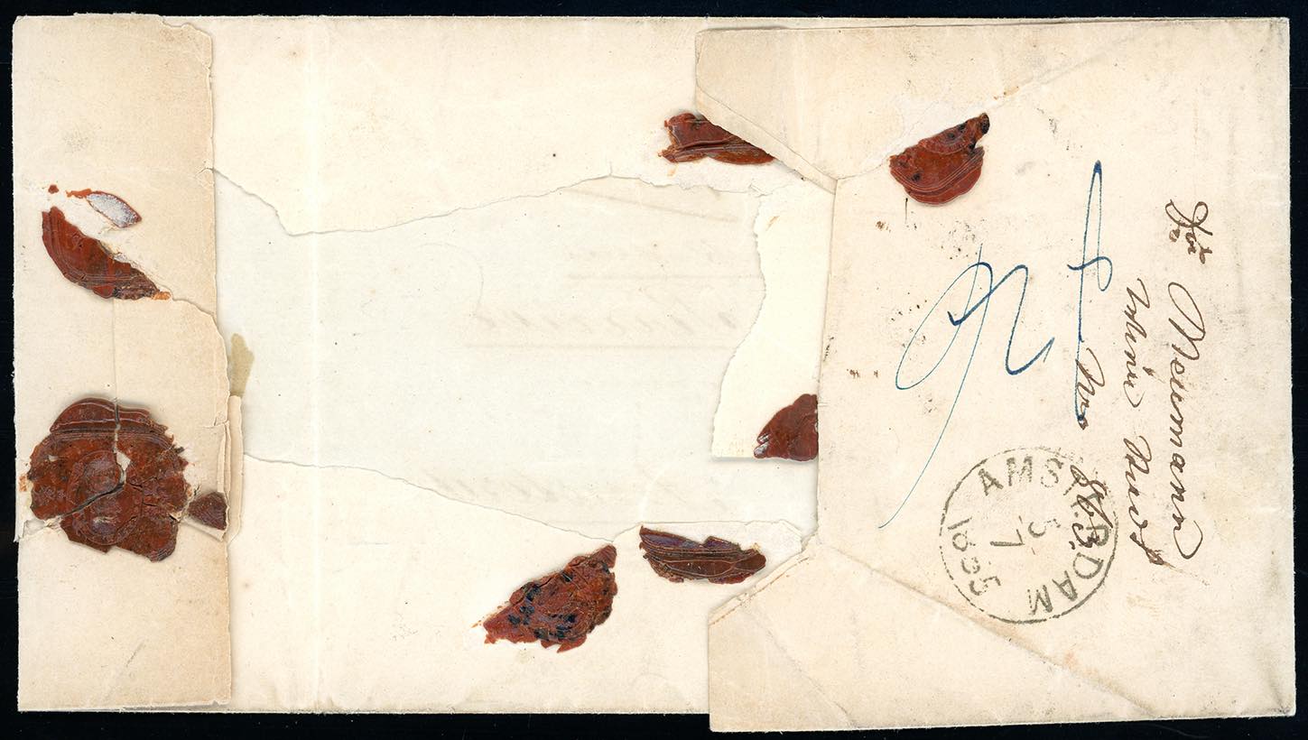AUSTRIA 1855 - 9 kr. azzurro, 6 kr. bruno, due esemplari, uno al verso per il diritto di raccomandazione, tutti carta a macchina (4/I,5/I), ottimo stato, su lettera raccomandata da Vienna 2/7/1855 ad Amsterdam. Pregevole e di ottimo aspetto. Cert. Ferchenbauer.