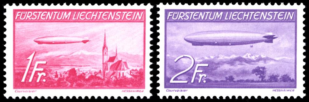 LIECHTENSTEIN POSTA AEREA 1936 - Dirigibile Hindenburg, serie completa (A15/A16), gomma originale integra, perfetti.