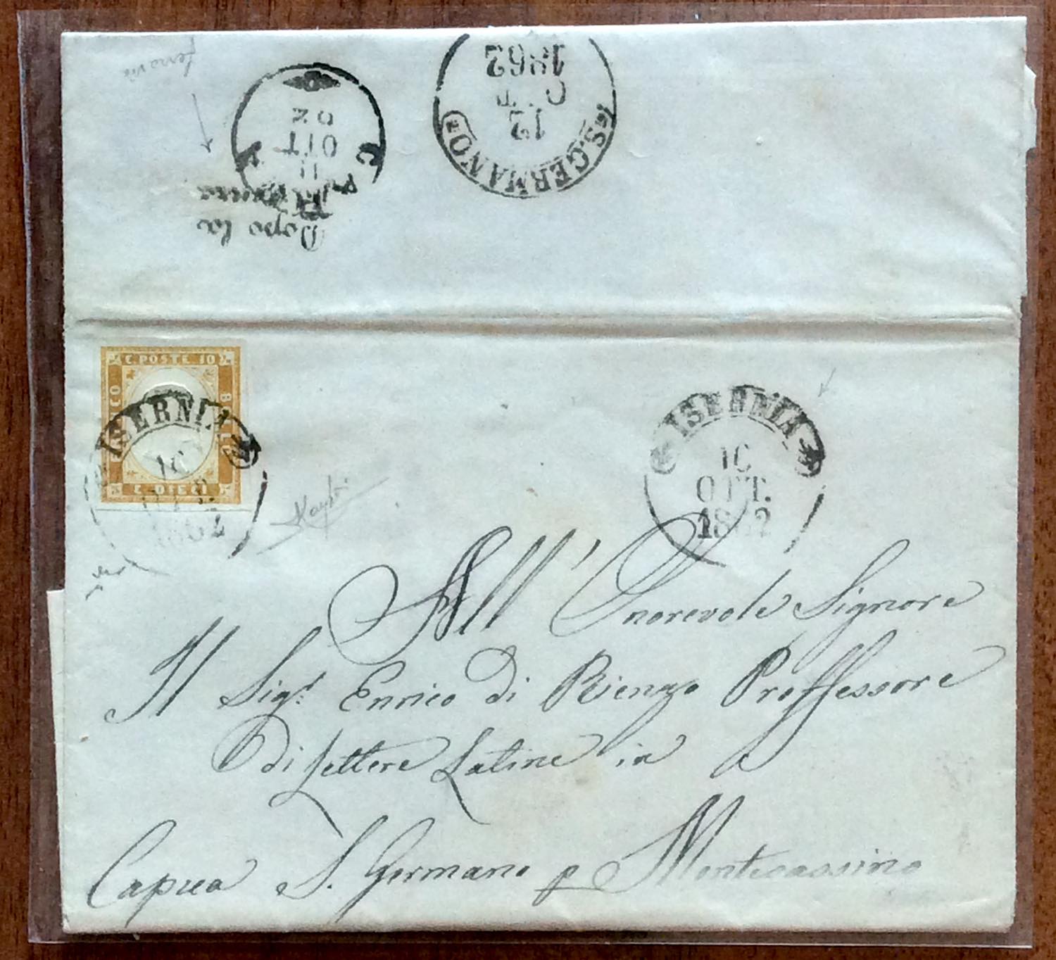 PROVINCE NAPOLETANE/REGNO D'ITALIA 1862 - Interessante e raro insieme di 21 lettere e un frammento, tutte affrancate con IV emissione di Sardegna o Matraire dentellati di Regno, inviate dagli ex territori delle Province Napoletane nell'ottobre 1862, primo mese di introduzione di francobolli sardi. Insieme di difficile reperibilità e di grande interesse per lo specialista. Ex coll. Imperato.