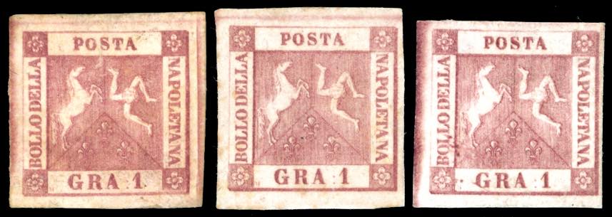 Lot 134 - 1859 - 1 grano rosa carminio, II tavola (4) , tre esemplari ...