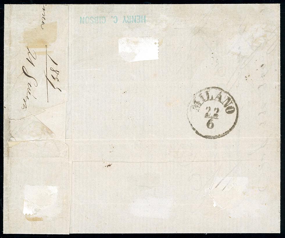 1857 - 5 cent. giallo arancio, 10 cent. bianco, coppia (1,2), perfetti, entrambi con piccolo angolo di foglio, su lettera da Parma ... Read more