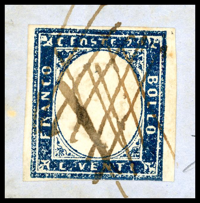 LIGURIA-S. MARTINO DEL VARO, tratti a penna incrociati sull'affrancatura e d.c. a lato, inedito, da quotarsi punti R2/R3 - 20 cent. indaco ... Read more