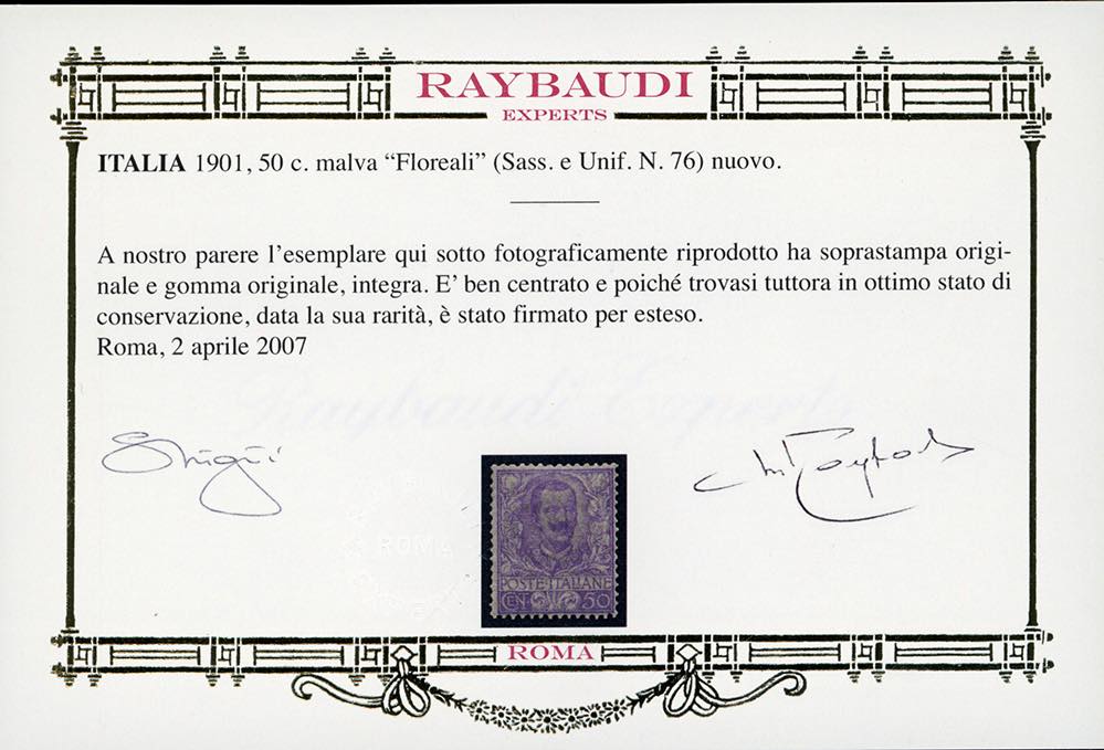 1901/26 - Floreale, tutti i valori emessi (68/78,91,150,200/203), ben centrati, gomma originale integra, perfetti e molto freschi. Ottima qualità. Cert. Oro Raybaudi per il 40 e il 50 cent. (cat.Sassone € 11.500/25.500).