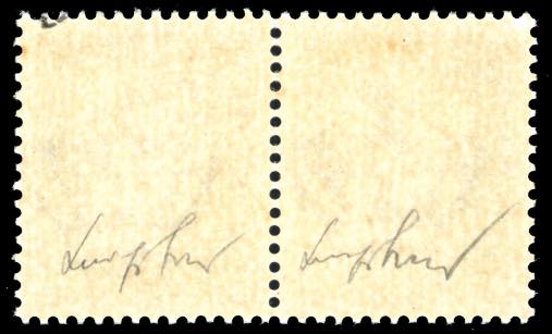 1944 - 10 cent. soprastampa G.N.R. di Brescia, I tipo (471/I), soprastampa in albino spostata in alto, inclinata ed incompleta nell'esemplare di destra, gomma originale, impercettibile traccia di linguella, perfetta. Varietà non catalogata, rara. Cert. Sirotti.