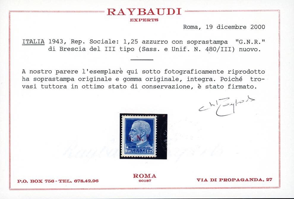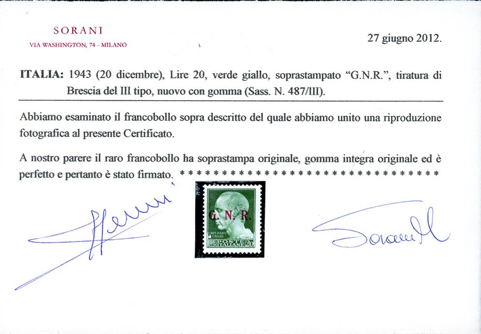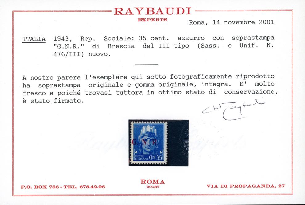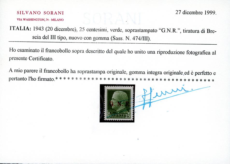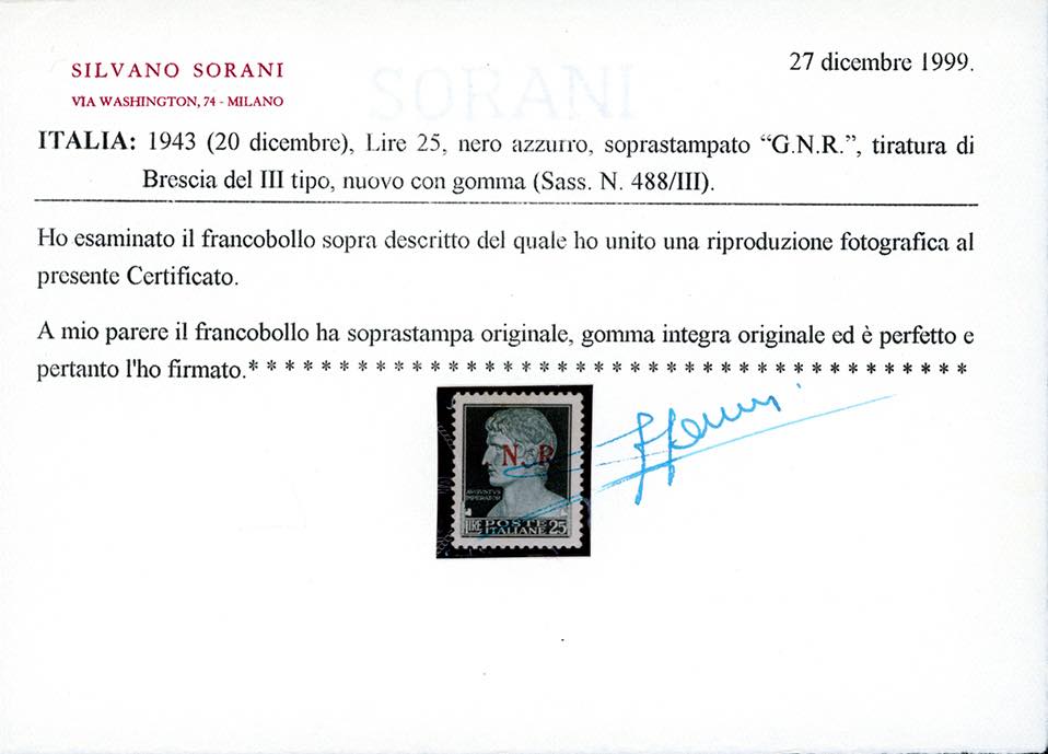 Lot 1073 - 1943 - Soprastampati G.N.R., tiratura di Brescia, III tipo, ...