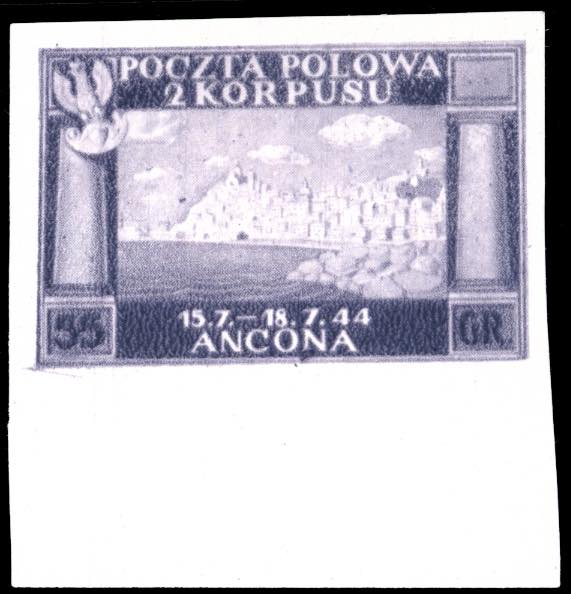 1946 - 55 g. violetto Vittorie polacche, errore di colore, non dentellato (6B/II), bordo di foglio, senza gomma come sempre, perfetto. Raro ... Read more