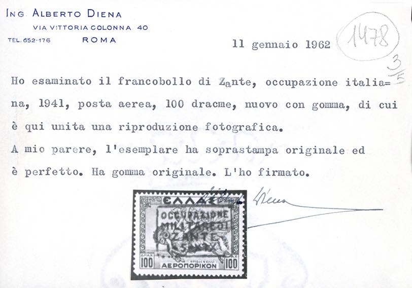 ZANTE POSTA AEREA 1941 - Soprastampati, otto valori (2,3,4,6,7,8,9,10), gomma originale integra, perfetti. Estremamente rari e di ottima qualità. R.Mondolfo, G.Bolaffi (due certificati), A.Diena (due certificati), cert. Colla per gli otto valori.