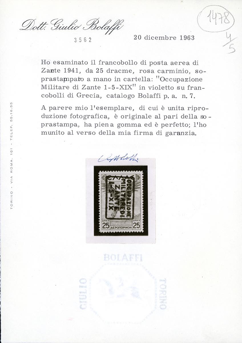 Lot 1455 - ZANTE POSTA AEREA 1941 - Soprastampati, otto valori ...