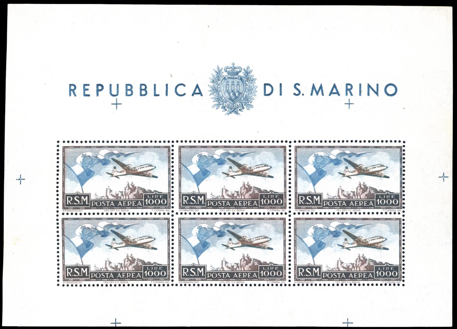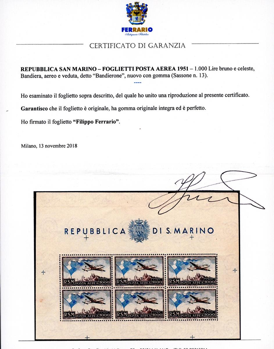 Lot 1920 - 1951 - 1.000 lire Bandierone, foglietto (13), nuovo, gomma ...