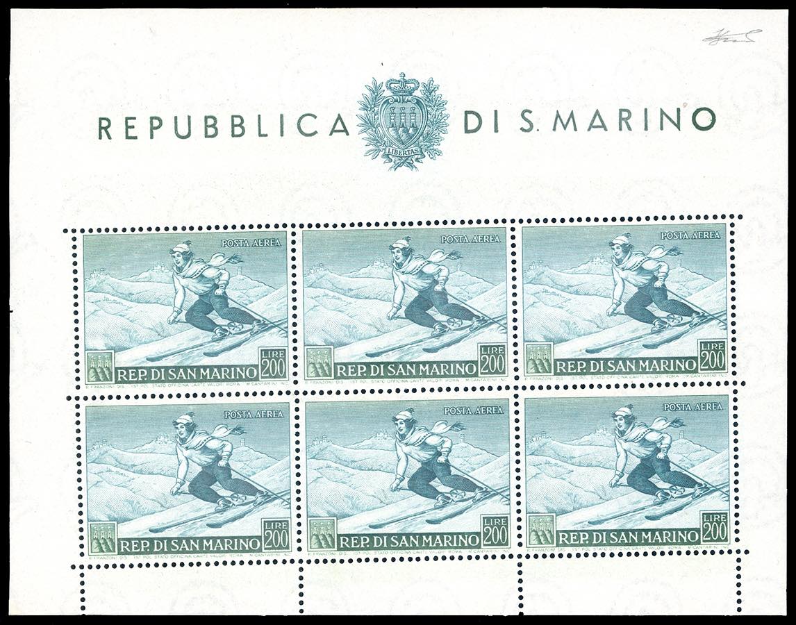 Lot 1924 - 1953 - 200 lire Sciatrice, foglietto (15), nuovo, gomma ...