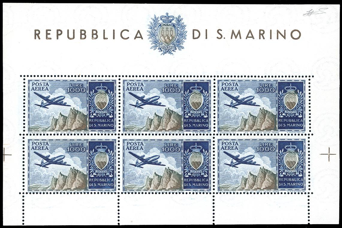 Lot 1928 - 1954 - 1.000 lire Aereo, foglietto (16), perfetto, nuovo, ...