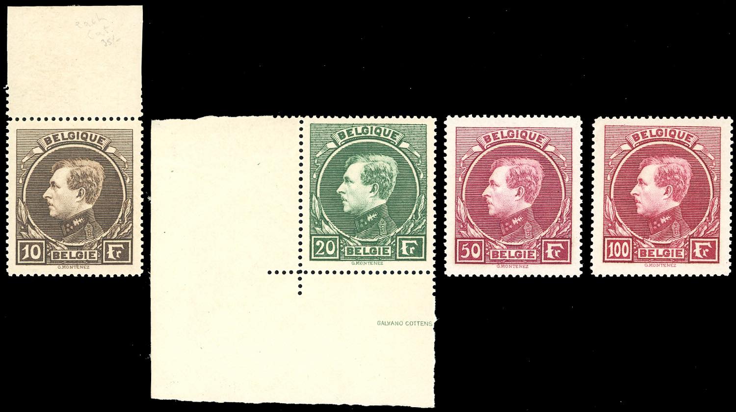 BELGIO 1929 - Alberto I, carta bianca, tiratura di Parigi, serie completa (289/292), nuovi, gomma originale integra, perfetti.