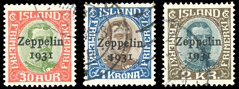 ISLANDA POSTA AEREA 1931 - Zeppelin, serie completa (A9/A11), usati, perfetti.