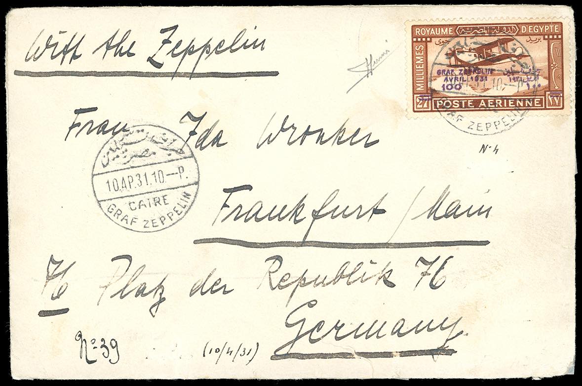 EGITTO POSTA AEREA 1931 - 100 m. su 27 m. Zeppelin (Yv.A4), perfetto, usato su aerogramma da Il Cairo 10/4/1931 per la Germania. Sorani.