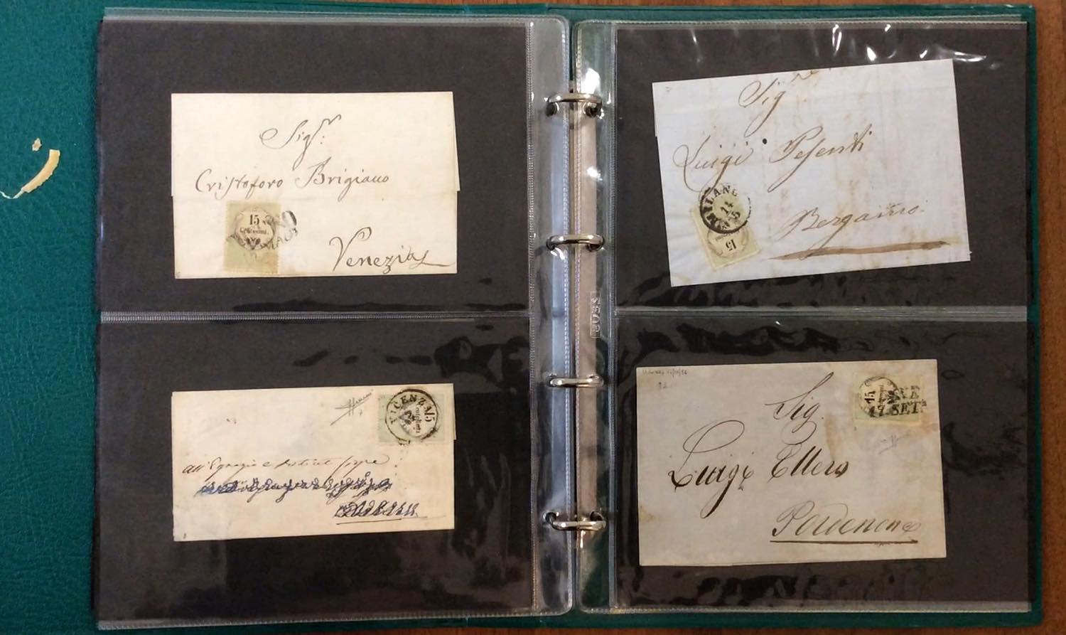 LOMBARDO VENETO MARCHE DA BOLLO 1854/1857 - Interessante collezione comprendente 27 lettere, un frontespizio e tre frammenti, tutti affrancati con marche da bollo usate postalmente, in un raccoglitore. Ottima varietà di annulli, diversi esemplari firmati da noti periti. Qualità generalmente ottima. Insieme di difficile reperibilità.