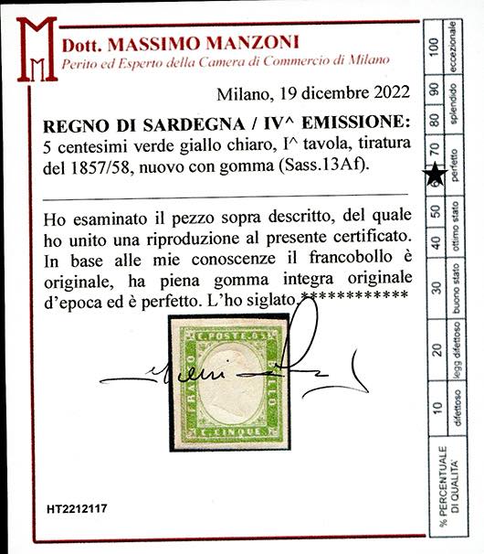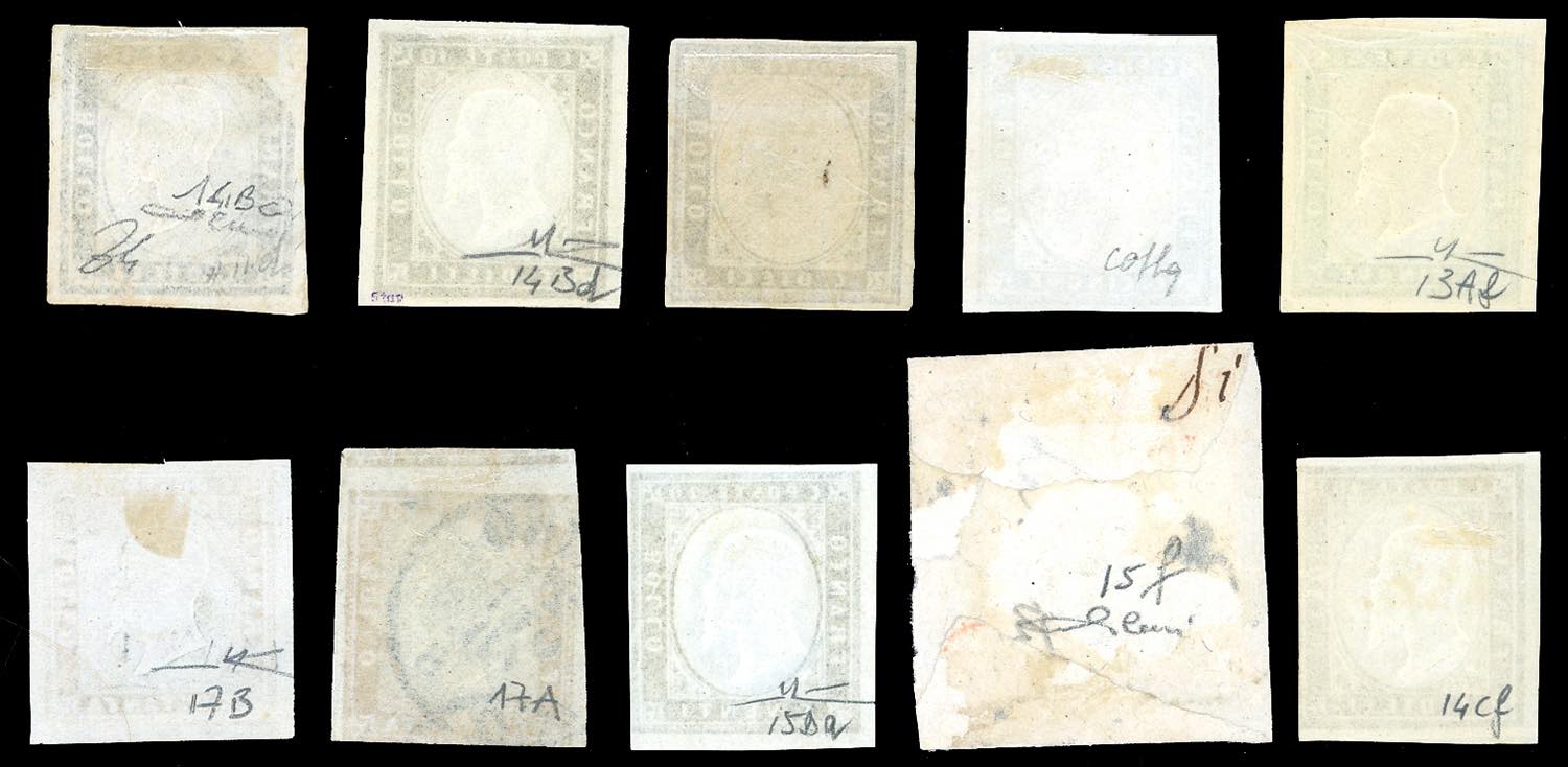 SARDEGNA 1855/1861 - Bell'insieme di francobolli della IV emissione con tinte pregiate o rare, nuovi o usati, per lo più perfetti. Tutti classificati da noti periti, sette certificati.