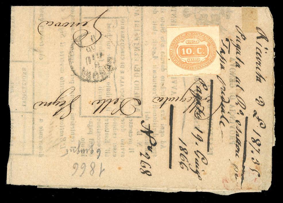 Lot 2144 - REGNO SEGNATASSE 1864/1868 - Sei lettere tassate in arrivo ...