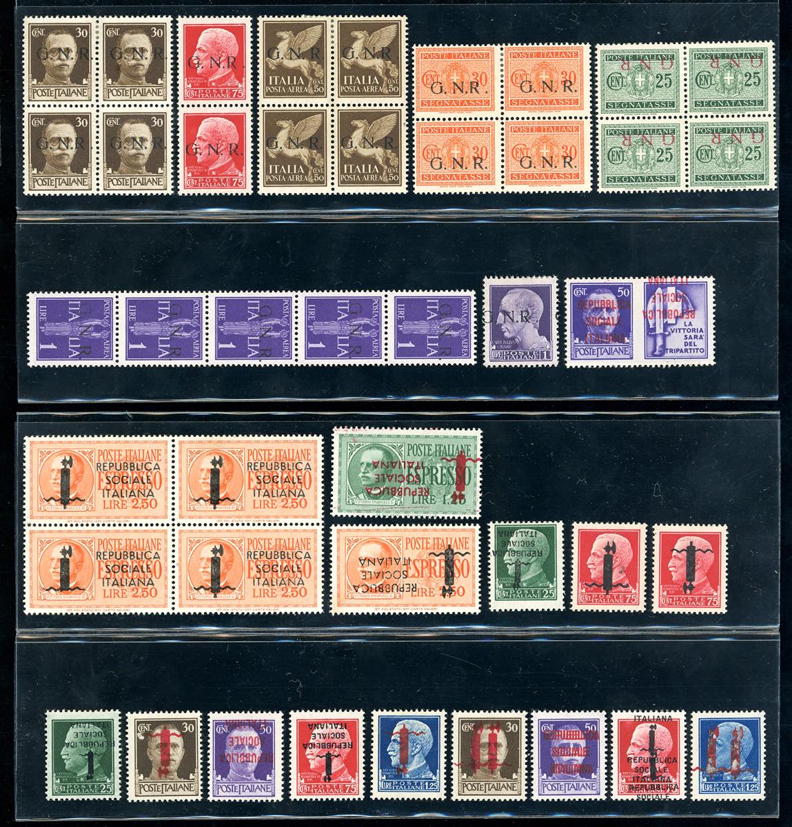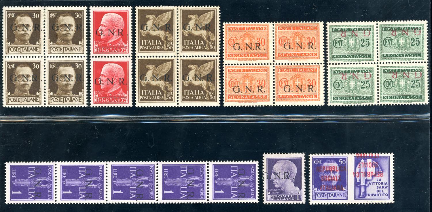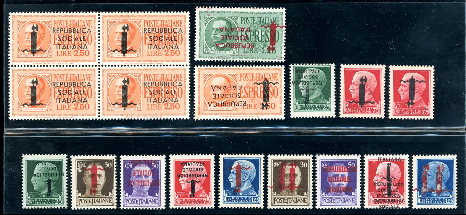 REPUBBLICA SOCIALE ITALIANA 1943/1944 - Bell'insieme di francobolli soprastampati con varietà, tutti linguellati e con soprastampe originali.