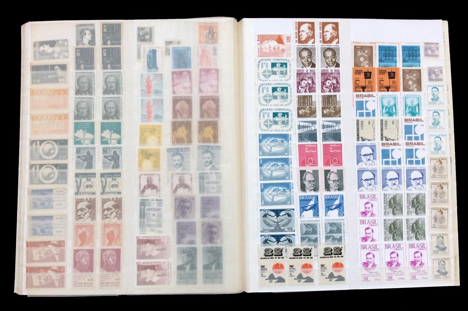 SUDAMERICA 1900/1982 - Accumulazione di francobolli del periodo quasi tutti nuovi, di vari paesi del Sud America, in otto raccoglitori in uno scatolone. Prevalenza di materiale moderno. Alto valore di catalogo, divertente.