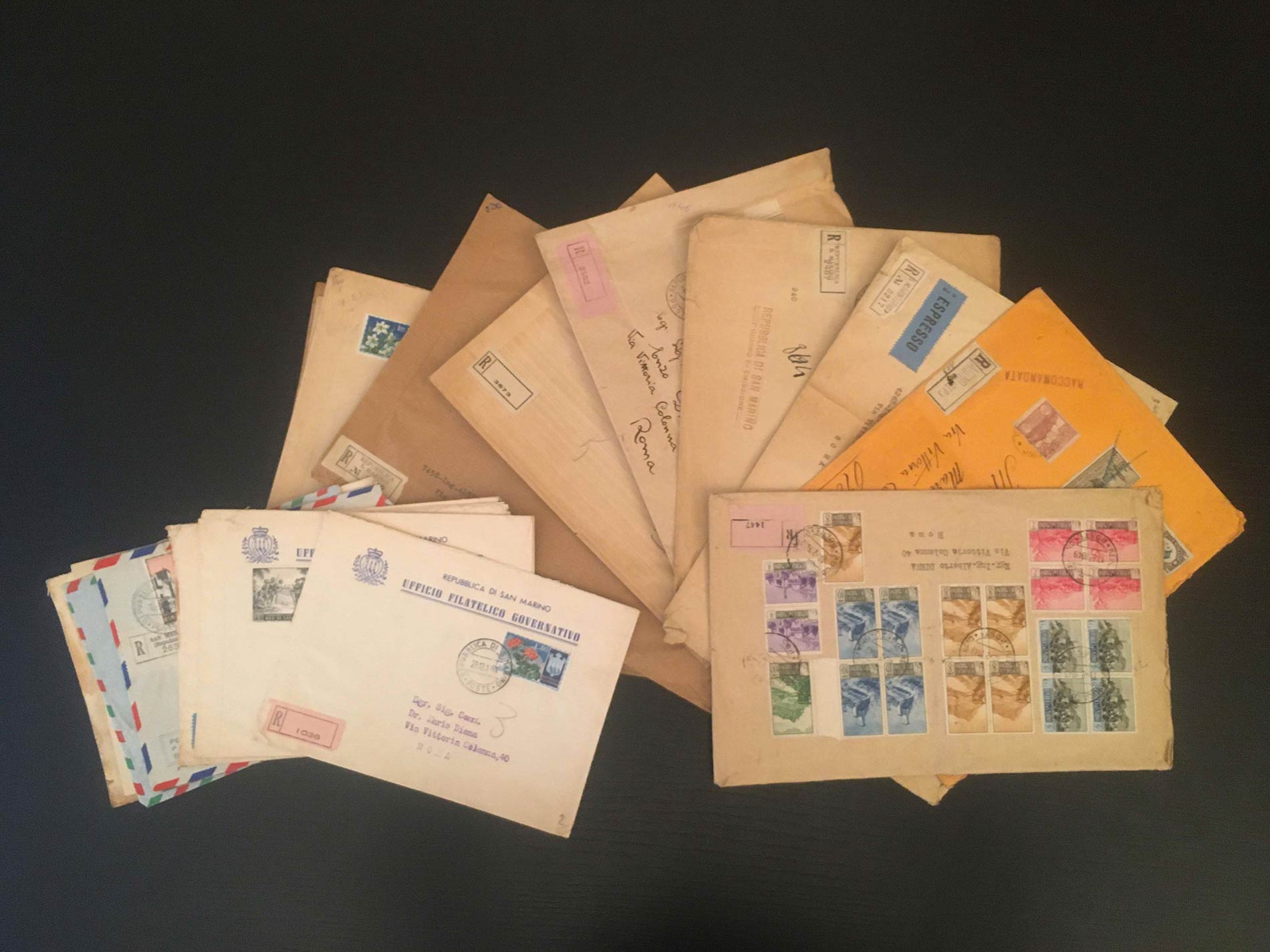 SAN MARINO 1923/1955 - Ventitre buste e tre cartoline con interessanti e non comuni affrancature del periodo, alcune con serie complete. Alto valore di catalogo.