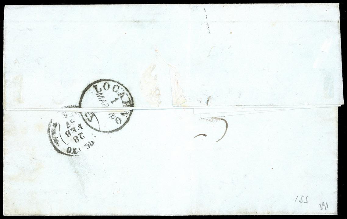 BINASCO, corsivo punti R2 - 5 soldi (25), due esemplari, perfetti, su lettera del 27/2/1859 a Lugano, rispedita a Locarno, in Svizzera. ... Read more