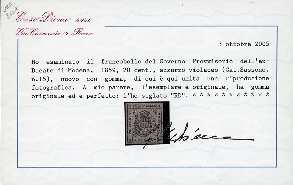 Lot 171 - 1859 - 20 cent. ardesia violaceo (15), nuovo, gomma ...