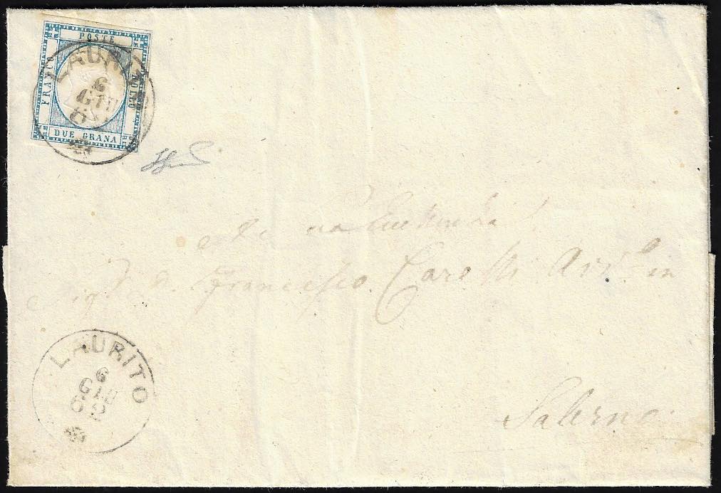 LAURITO, cerchio piccolo punti 9 - 2 grana (20), perfetto, su lettera del 6/6/1862 per Salerno.