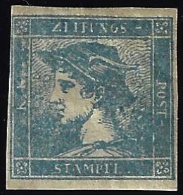 1851 - 3 cent. celeste, Mercurio, carta a coste verticali (6a), nuovo, gomma originale, perfetto. Margini da ampi a sufficienti. Cert. ... Read more