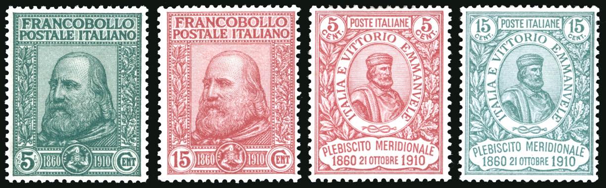 1910 - Garibaldi, serie completa (87/90), buona/ottima centratura, gomma originale integra, perfetti e molto freschi. G.Oliva per i n. 89/90, Ferrario per la serie (cat.Sassone € 2.600/6.500).