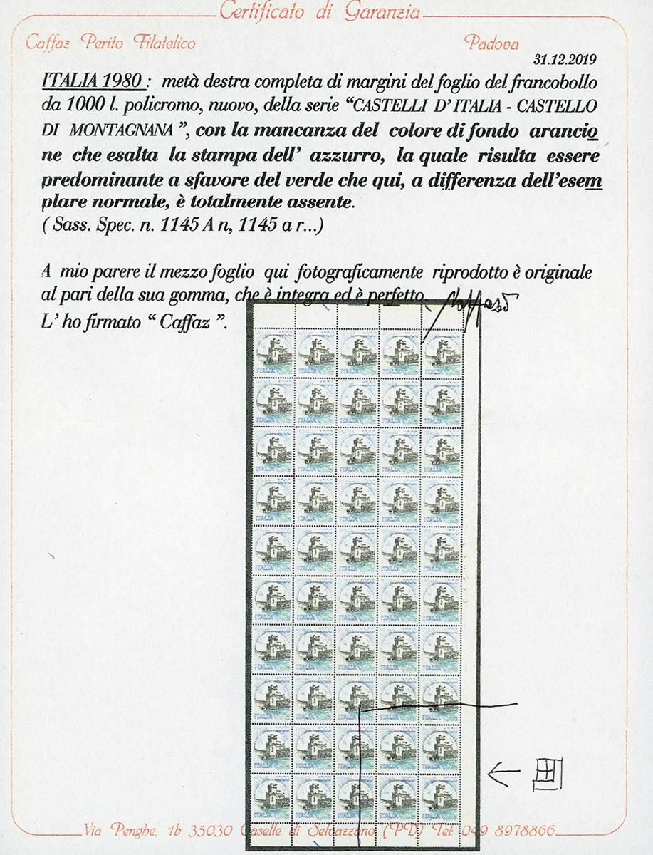 Lot 2119 - 1980 - 1.000 lire "Castello celeste", francobollo naturale ...