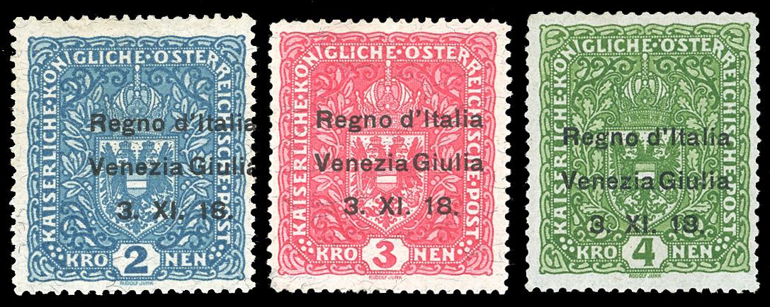 Lot 2418 - VENEZIA GIULIA 1918 - 2 k., 3 k. e 4 k. soprastampati ...