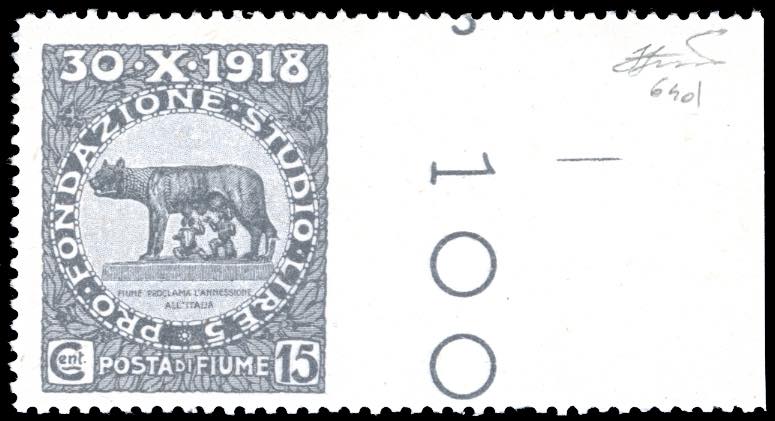 Lot 2579 - FIUME 1919 - 15 cent. Plebiscito, non dentellato a destra ...