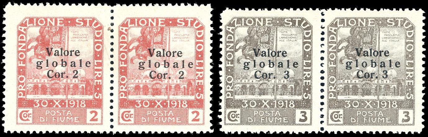 Lot 2707 - FIUME 1920 - 2 cor. su 2 cor. e 3 cor. su 3 cor. Valore ...