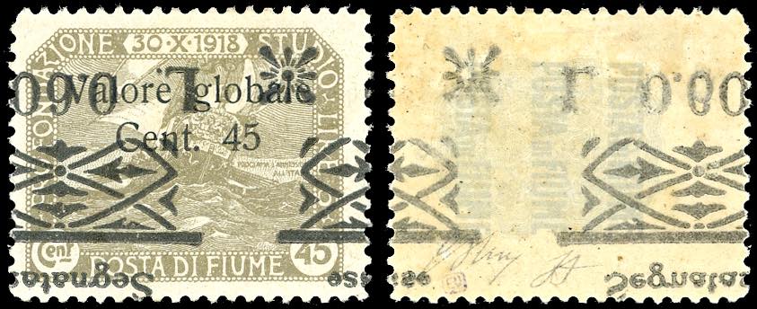 FIUME SEGNATASSE 1921 - 0,60 lire su 45 cent. soprastampato, soprastampa capovolta e fortemente spostata a destra, "Segnatasse" a cavallo e ... Read more