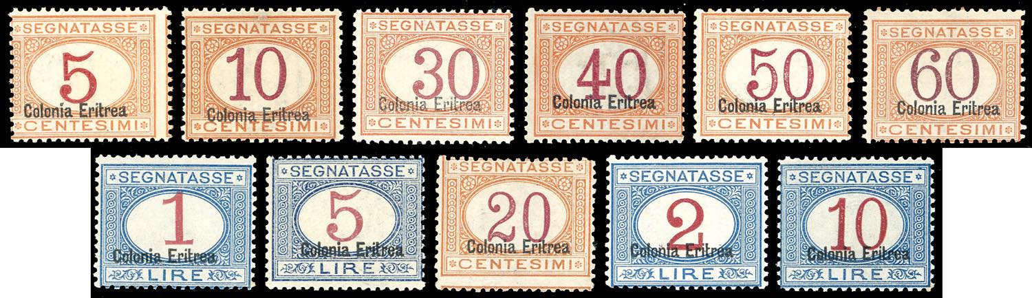 SEGNATASSE 1920/26 - Soprastampati in basso, serie completa (14/24), nuovi, gomma originale integra, perfetti. Molto freschi. Il 20 cent. ... Read more