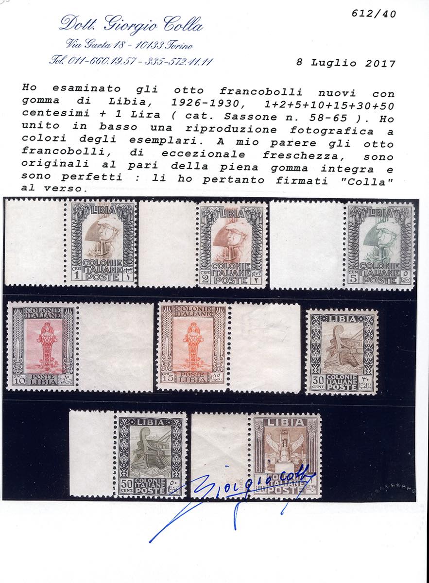 1926/30 - Pittorica, dent. 11, senza filigrana, serie completa (58/65), quasi tutti bordo di foglio, gomma originale integra, perfetti e di eccezionale freschezza. Splendidi! Cert. Colla.