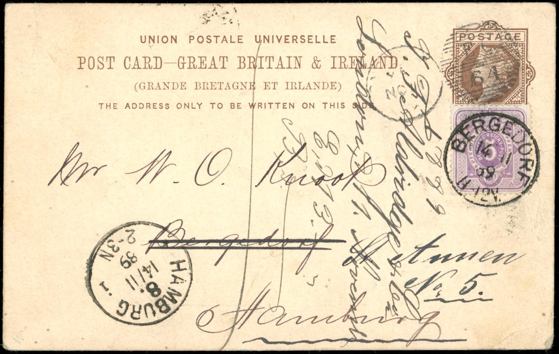 GRAN BRETAGNA/ GERMANIA BERGEDORF 1889 - Redirected with additional franking.