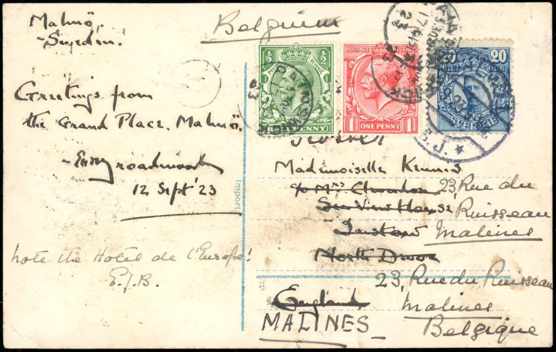 SVEZIA/GRAN BRETAGNA/BELGIO 1923 - Redirected with additional franking.